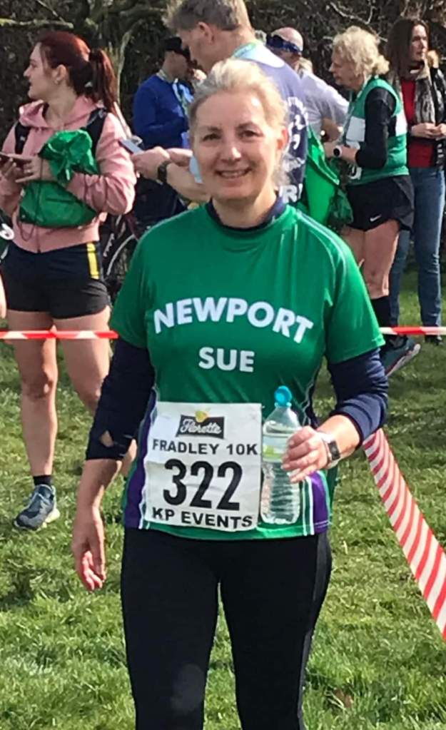 Sue finished the race in 463rd place, in a time of 1 hour, 4 minutes, 6 seconds, in a field of 701 runners. She said afterwards: “Fradley 10k was the first race of the year for me. A great village race, well organised with fabulous support throughout!”