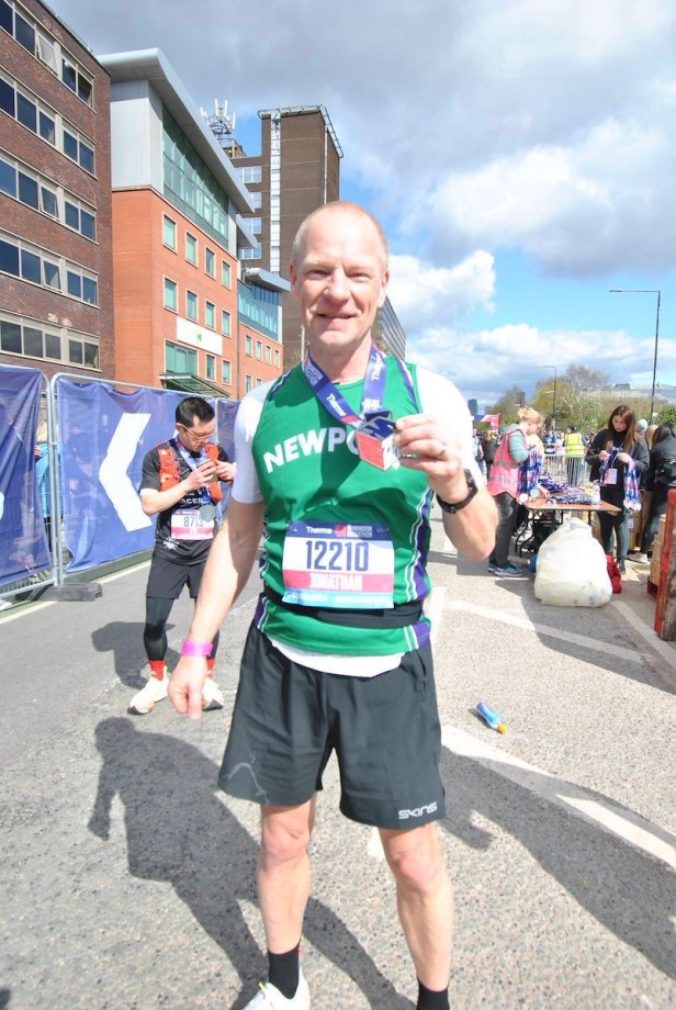 Annabel Bolton was the next Newport runner to finish, her time of 4:44:45 securing 10,947th position. She said afterwards: “The Athletes Village was well organised and everyone was friendly and helpful, the weather was perfect for running, if a little on the warm side at times, and the support around the course was excellent. A particular highlight was running through the city centre with crowds cheering and encouraging everyone along.
