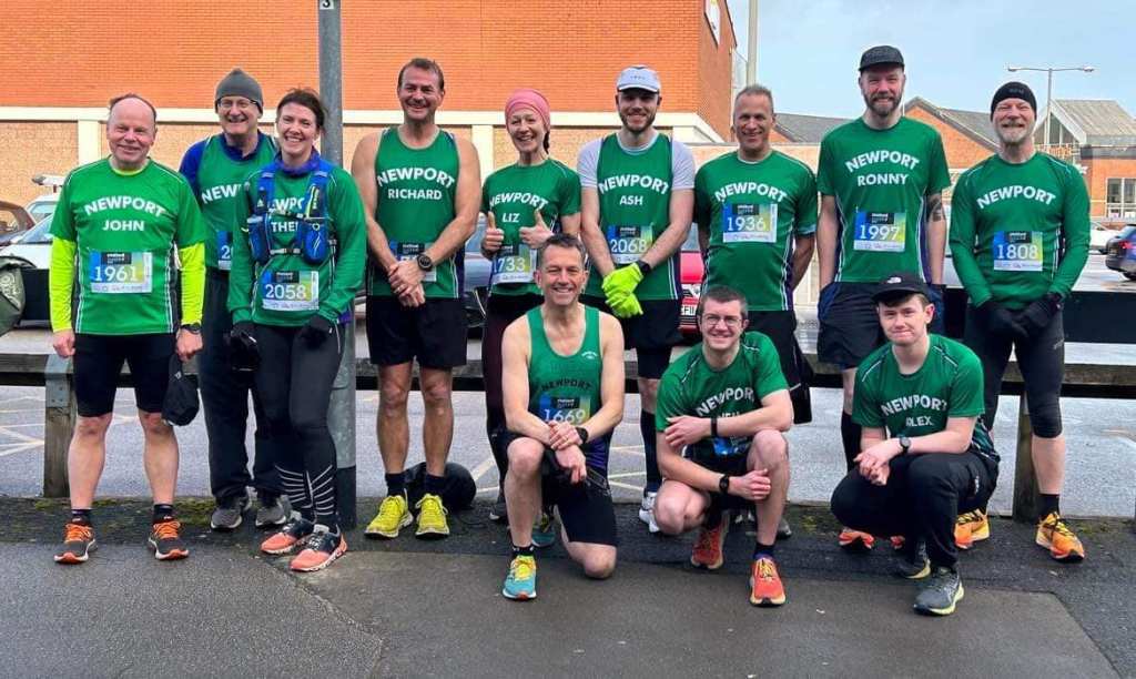 A field of 1,750 runners took to the streets of the county town, and Newport’s first runner back was David Clarke in 50th place, who clocked a time of 1 hour, 24 minutes, 19 seconds. Robin Guy was next, 93rd overall, in a time of 1:28:15, just ahead of Ashley Moore, who ran a time of 1:30:54 to finish 148th. Richard Bennett was 251st in 1:38:00, just ahead of Phil Dolding, who took 277th position in a time of 1:38:46, and Andy Wilmot, who finished 306th in 1:39:40. Next up was Liz Bennett, 321st overall with a time of 1:39:55, followed by Neil Fairbrother, who stopped the clock at 1:44:49 for 417th position.