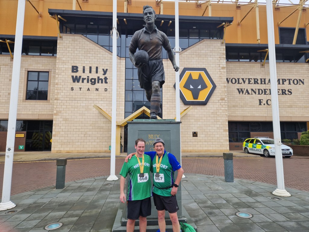 On Sunday, father and son team Ralph and Matthew Humphries of Newport & District Running Club took part in the Wolverhampton 10k, a road race which starts and finishes at Molineux stadium. The race takes in a single anti-clockwise lap of the roads to the northwest of Wolverhampton city centre, including Oxley Park, Aldersley, Whitmore Reans, and a lap of West Park in the final stages of the race, a location which many runners will know from the local parkrun.