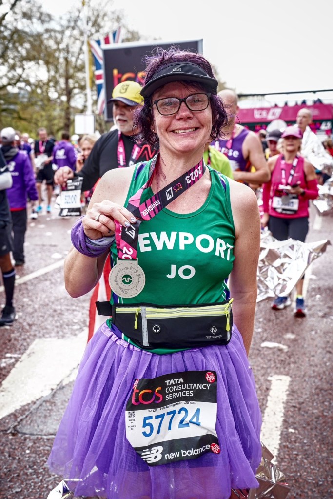 In a field of over 53,000 runners, Newport’s contenders in this year’s race were Robin Guy, who finished in 3,684 position with a time of 3 hours, 5 minutes, 21 seconds, Richard Bennett, who was 13,593rd in a time of 3:47:24, and Jo Lutner, who ran a time of 4:37:14 to finish in29,219th place. After she had finished, Jo sent us this account of her experience: