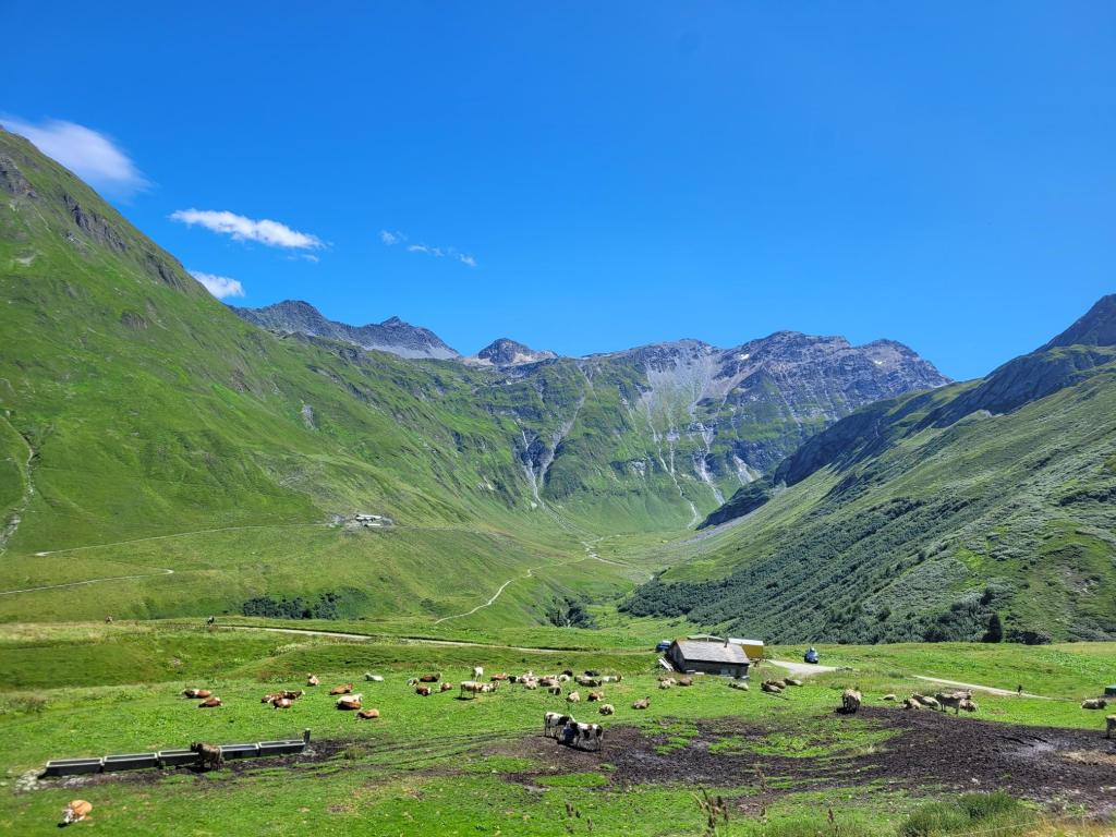 Day 2 started with a long climb out of Les Contamines up to Col du Bonhomme and then onto Col de Croix de la Bonhomme. The trail opens out to Alpine meadows full of wild flowers with the sound of Cowbells accompanying us most of the way up. A brief stop at the top for photos before dropping down into Le Chapieux on a very runnable trail down into the valley.