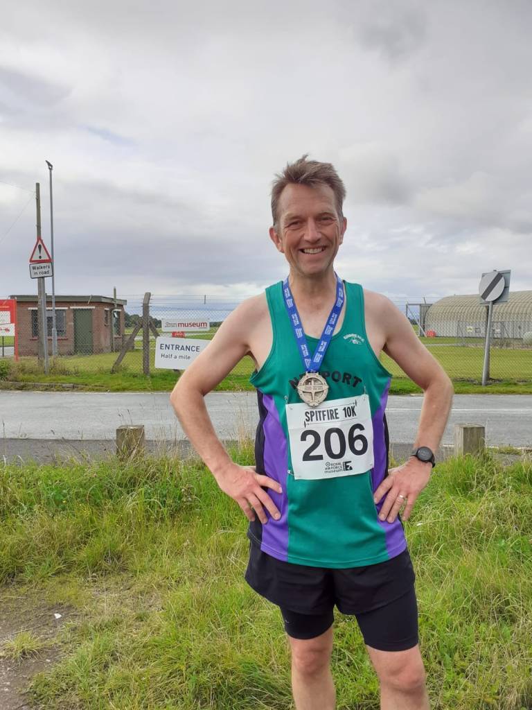 On Sunday, Newport & District Running Club’s Phil Dolding and David Evans both took part in the Cosford “Spitfire” 10k, a road race which takes place on the runways and service roads at RAF Cosford. With just 21 metres of climbing, this is one of flatter races locally, allowing runners to go for a quick time.