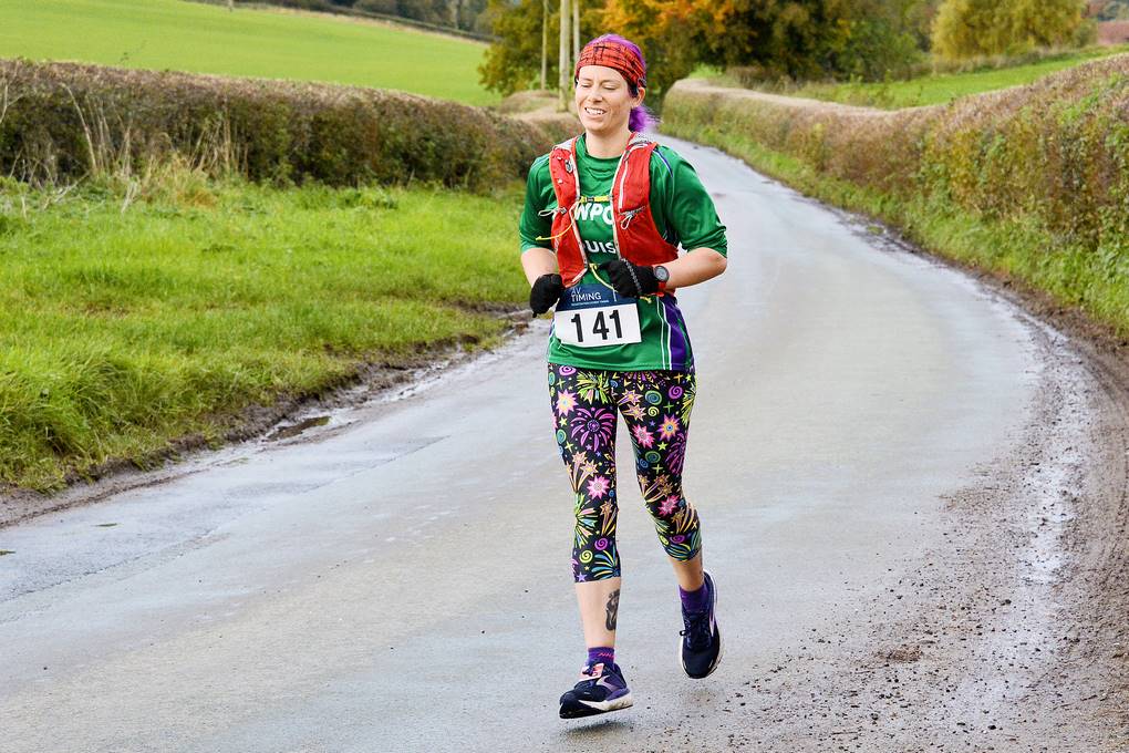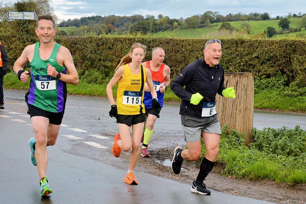 The first, smaller, lap takes runners through Standon via Weston Lane and Maer Lane, before the second, larger, lap takes competitors up to Maer, via Chapel Chorlton, before returning to the start/finish area. Conditions were cool but occasionally sunny, with some deep puddles to run through after Storm Ciaran left its mark earlier in the week.