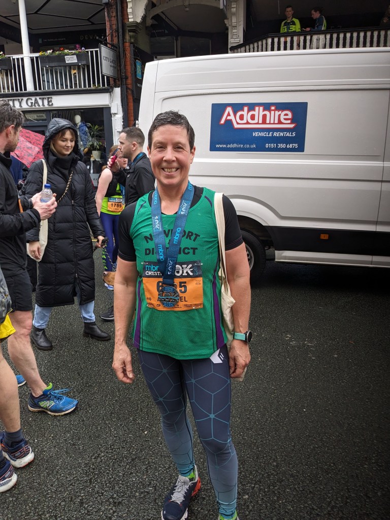 Afterwards, Annabel said: “It was the busiest 10k I have run. It was a chilly and damp race but exceptionally well organised with Race HQ at Chester Racecourse and a route around Chester which was very well supported by spectators and supportive volunteers, finishing in the City Centre. After a steady start I got into my stride, and was very pleased with my finishing time.”