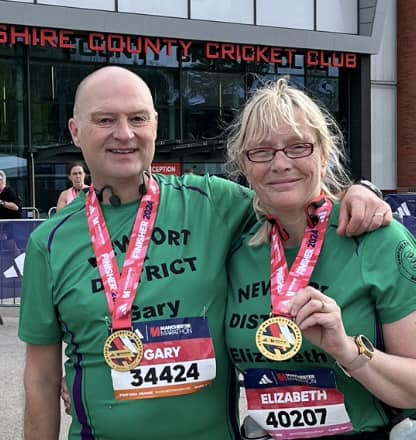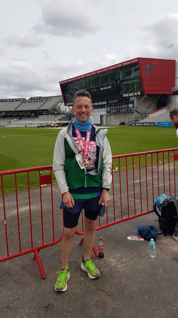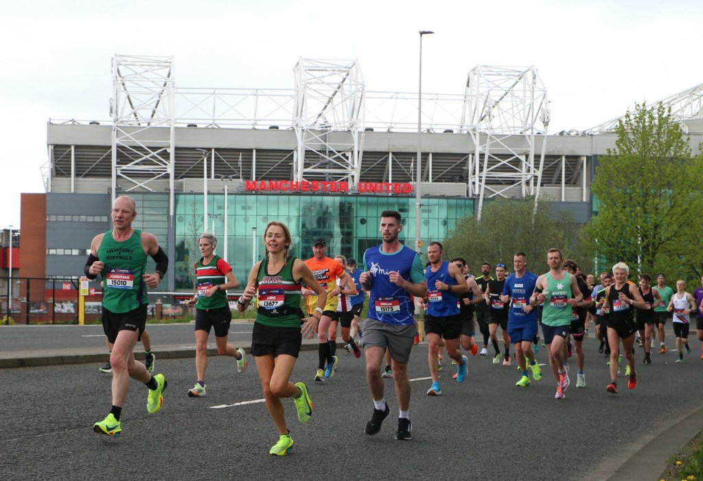 On Sunday, 5 members of Newport & District Running Club made the trip to Manchester to take part in the annual Manchester Marathon. Starting and finishing close to Old Trafford, runners tour a large area to the south-west of the city centre, taking in a circuitous route which encompasses areas such as Salford, Hulme, Sale and Timberley, with just over 110m of elevation change. The weather was good this year – not too warm or cold, and the rain held off.