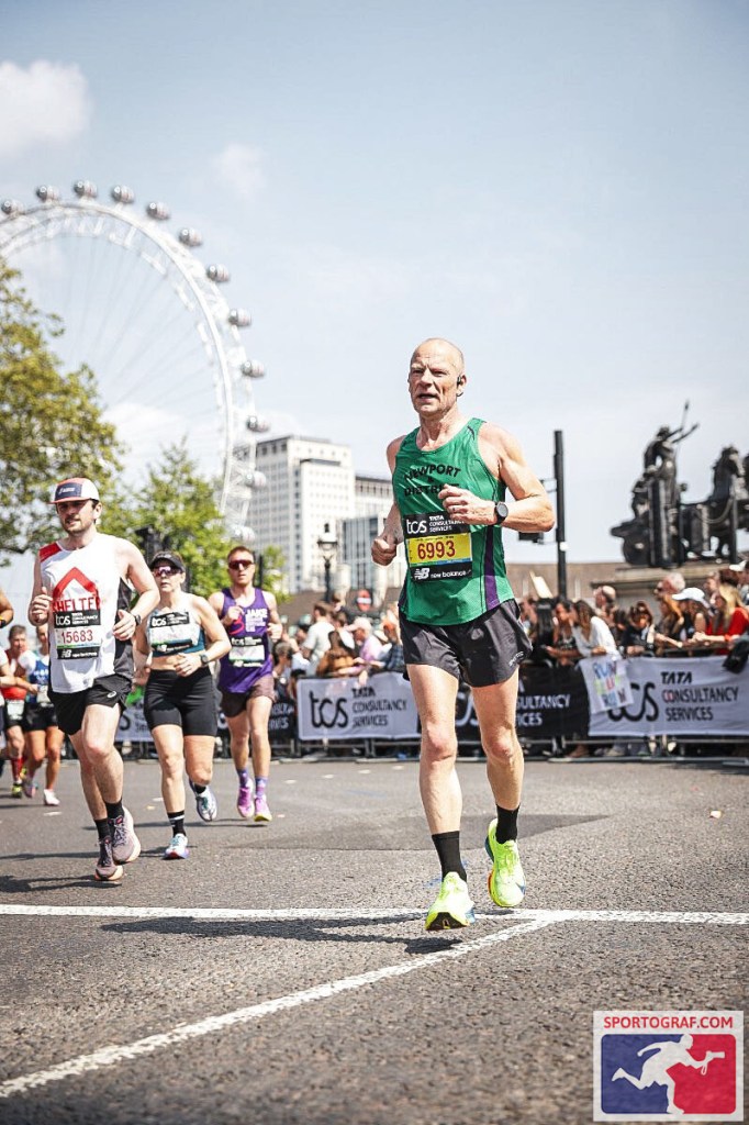 Jonathan: “Well, what can I say? It was soooo hot! Early start, as I was in the Yellow 2nd wave from Blackheath. So, I caught the number 43 bus from the hotel to Tower Bridge station, then a relaxing journey to Blackheath at 7.30am. Blackheath was cold and foggy. I made my way to the start area, and chilled out. 9:36am start, the sun had come through and was warming up at an alarming rate.
