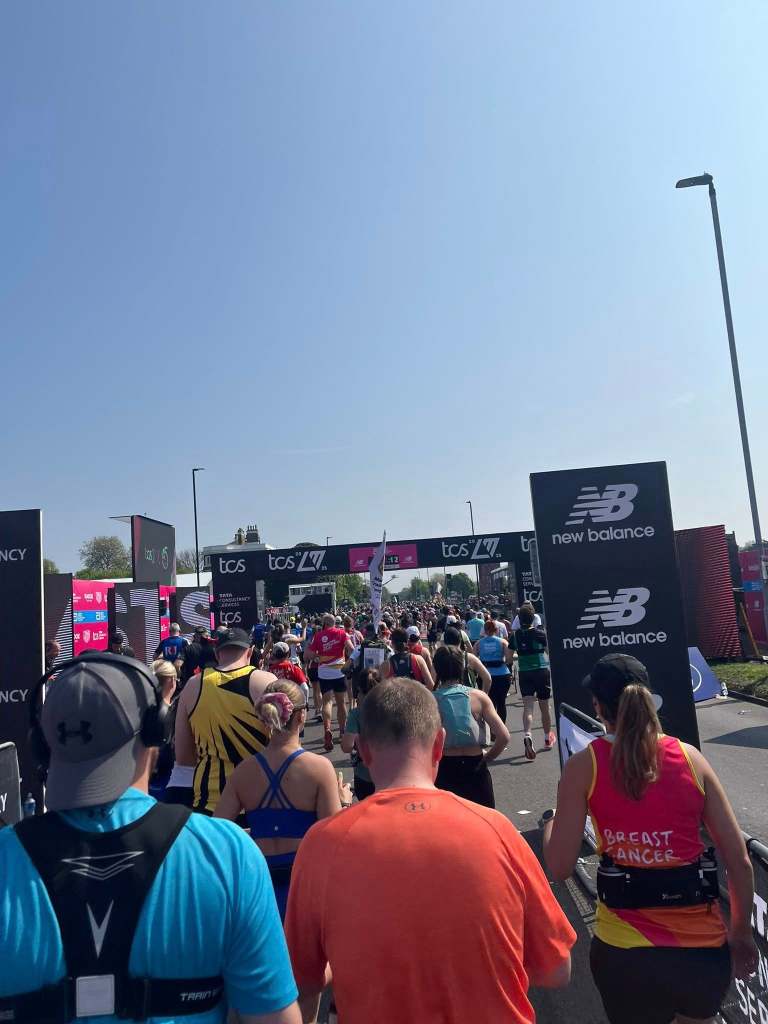 I was surprised by how emotional being on the start line was, knowing my family and friends were out on the course or watching at home. I started alongside a pacemaker, and stayed with him for 8 miles. Not having to think about pace or where to be along the route was great, and allowed me to just take it all in and join in with the banter from the sidelines.