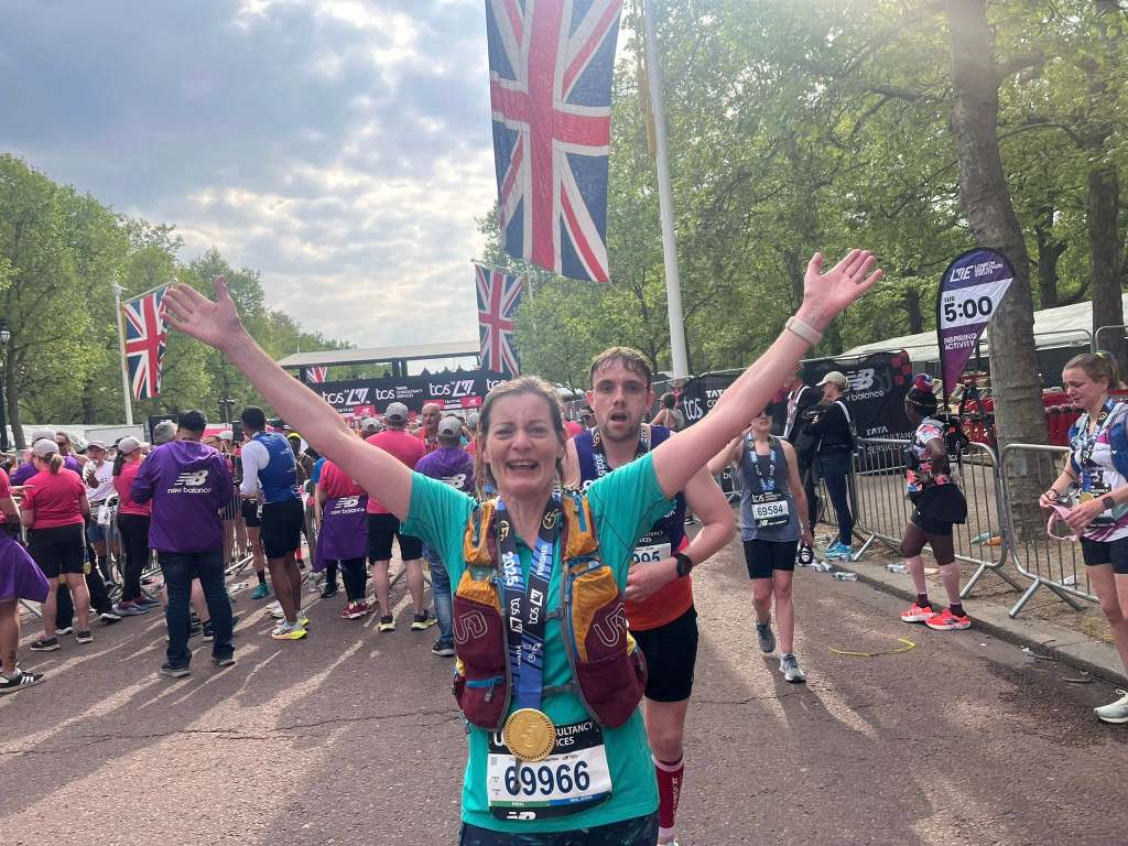 Ruth: “London was my first ever road marathon so I had no idea how participating in a major event would unfold. 2 weeks out I was preparing for rain, and by the night before I was adjusting my pace to take account of the heat. My training had gone mainly well, and I have done many long events off road so I was confident I could finish.