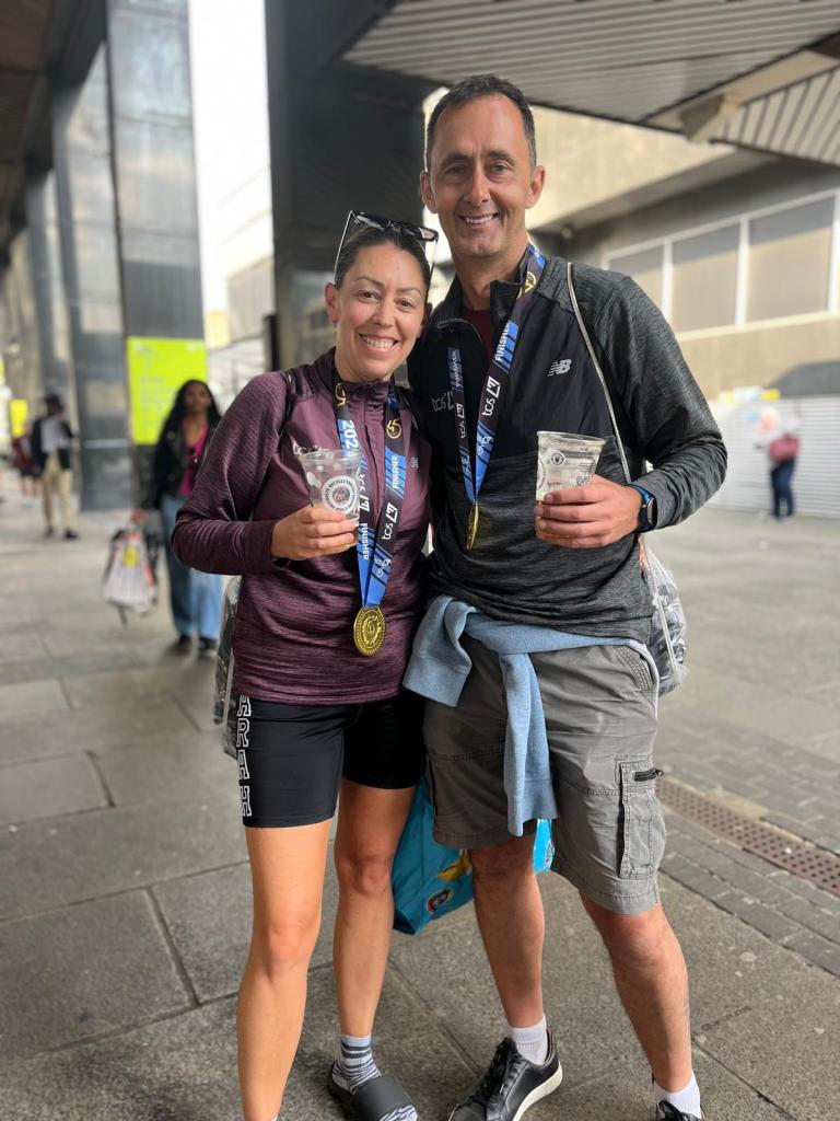 It’s always said you may only do 20 miles in training runs but you don’t need any more at London as the last 6.2 miles the crowds just carry you to the finish; mile 22-23 was another level with the deafening noise. The last 6 miles, Joe Wicks was in close proximity and I did say to him that I would change my name to Joe as everybody was shouting it out; to be fair to him he obliged with the crowd and other runners who wanted a selfie with him. He’s meant to be a keep fit guru and I beat him time wise, so presume I can call myself an elite athlete!