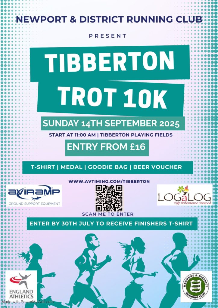 This 10k road race will take place on Sunday 14th September 2025, with a start time of 11:00am, at Tibberton School, near Newport in Shropshire. Postcode: TF10 8NN
