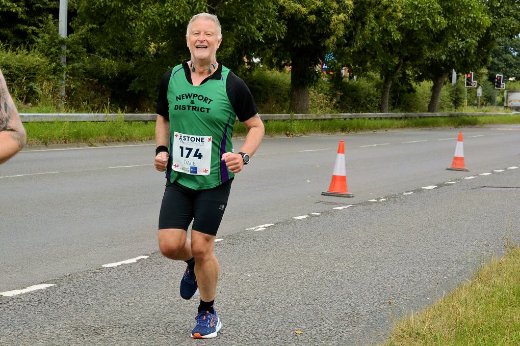 On Sunday, Dale Fordham represented Newport & District Running Club at the Stone 10k. On an overcast, but very warm and humid day, the race took place over two well-marshalled anti-clockwise laps of the roads to the south-east of Stone town itself, starting near and finishing at St. Michael’s School and taking in the A34, A51 and a short section of canal towpath.