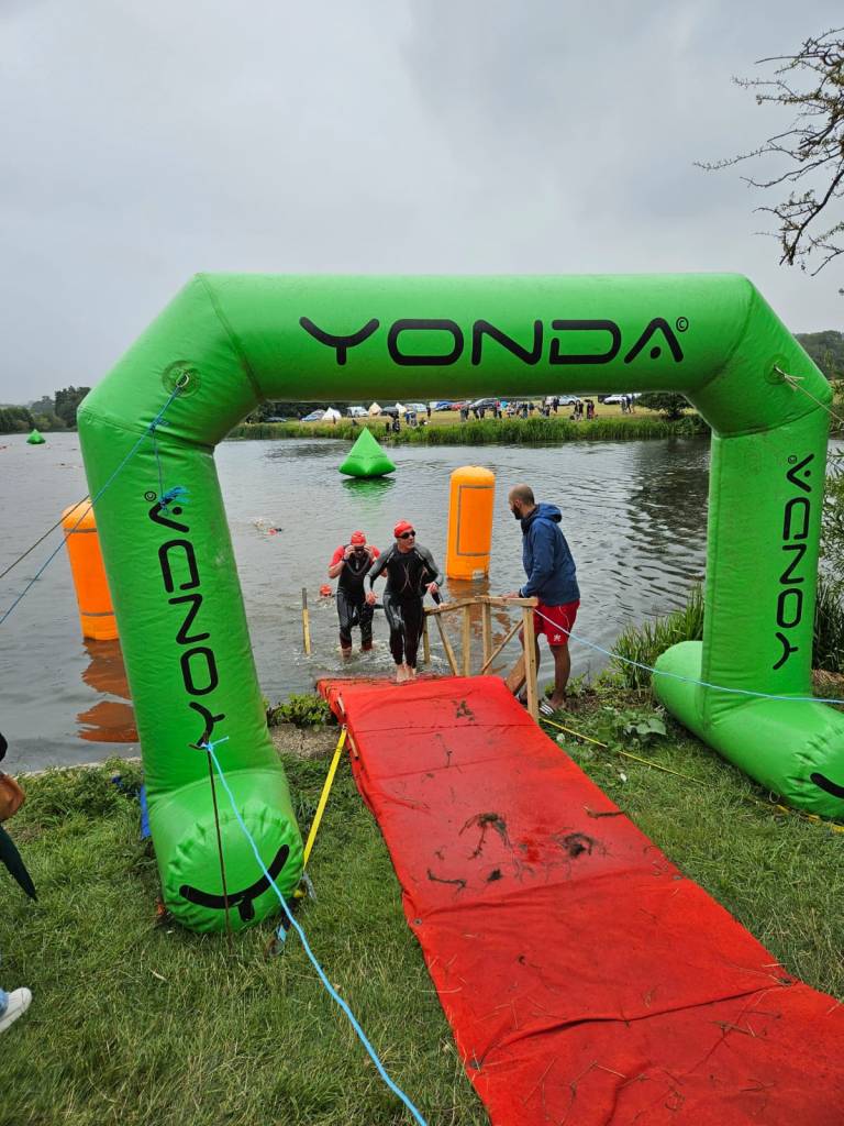 We arrived late on Saturday afternoon and set up camp on the edge of a massive field. We were told at check-in that there had been a lot of no shows, as the weather forecast was dreadful for Sunday. Our camping spot was about 2 minutes away from the swim start, so no great rush in the morning. After setting up, we ventured down to the lake to see a lot of weed which I would swim through the next day, and then the realisation that there was a 500-metre uphill run to transition, which looked a long way!