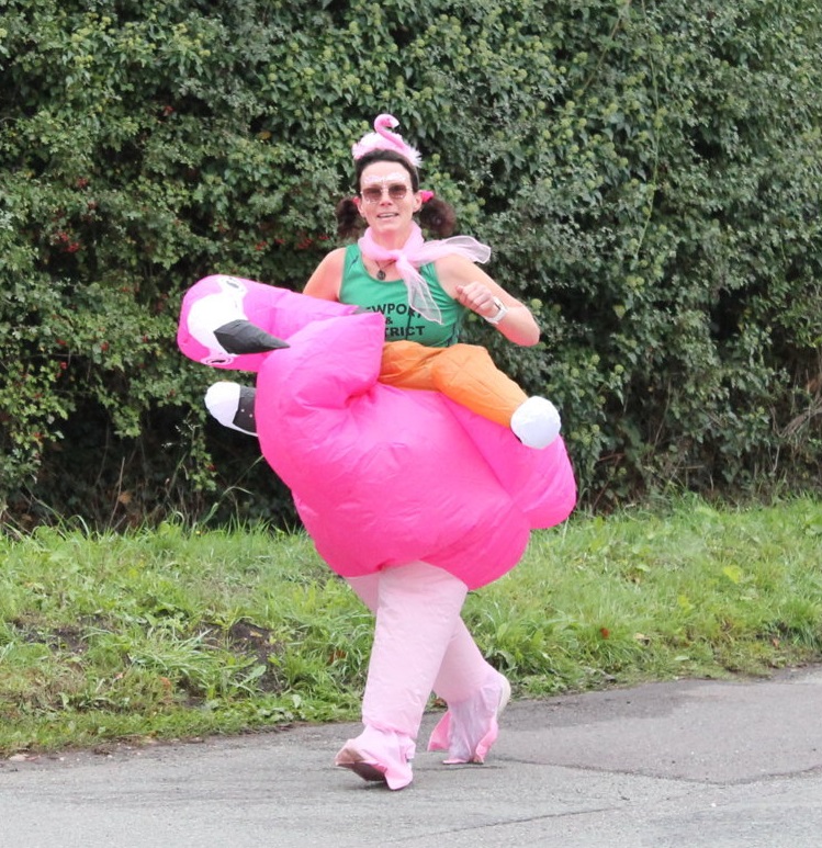 Simon Yap took 106th position with a time of 1:00:25, followed by Matthew Humphries, who ran a time of 1:01:52 for 116th place. Jenny Reeves clocked 1:05:45 to finish 152nd, followed by Emma Bishton, who was 172nd in 1:10:04. Louise Patterson did the race as part of a longer 10.5 mile run as part of her marathon training, and stopped the clock at 1:11:15 in 181st place. Ellen Mills finished 197th with her time of 1:16:01, whilst Jo Lutner dressed up as a Flamingo* rider for her run, finishing 201st with her time of 1:21:11. Rachael Hughes crossed the line in 1:27:05 to finish 202nd overall. Bringing up the tail of the race, volunteering as sweepers, were Anne Strowger, Helen Holdroyd and Kay Wilkinson-Smith.