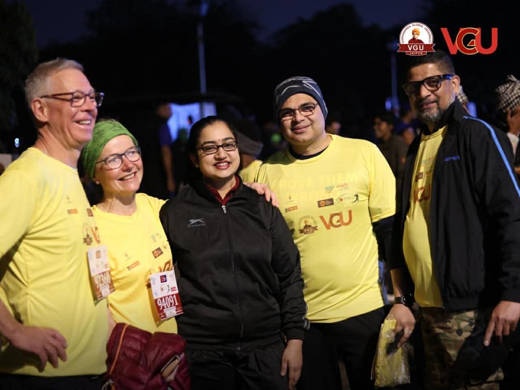 Jaipur is the capital and largest city of the Indian state of Rajasthan and It’s known widely as the “Pink City” (many of its historic buildings were painted terracotta pink) symbolic of hospitality. It has to be said, hospitality at its finest was showered on us that morning by so many people, but in particular Doctor Nikhil Nigam and Dr. Shraddha Arya and their team from Vivekananda Global University, Jaipur. We found them coordinating a huge number of entrants from their university to take part in the race.