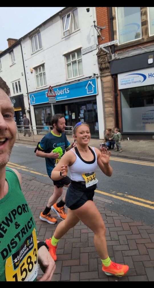 On Sunday, Newport & District Running Club were well represented at the Stafford Half Marathon, a popular annual road race that takes place every March in the county town itself. Featuring a slightly changed route to previous years, the race takes runners from the start line by Victoria Park into the western suburbs of the town, taking in a lap of Rowley park, before cutting through to the traditional climb up Radford Bank, and eventually the long slog up Beaconside, where participants this year were greeted by a headwind!