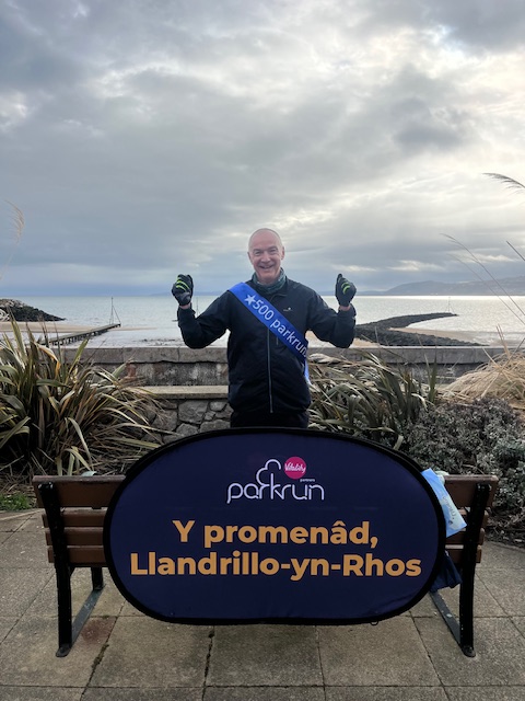 Last weekend, Newport & District Running Club’s Andy Churm became the latest club member to take part in 500 parkruns. He chose to go “on tour” to Y Promenâde, Llandrillo-yn-Rhos parkrun, a spectacular seaside course on the north coast of Wales, to complete this huge milestone!
